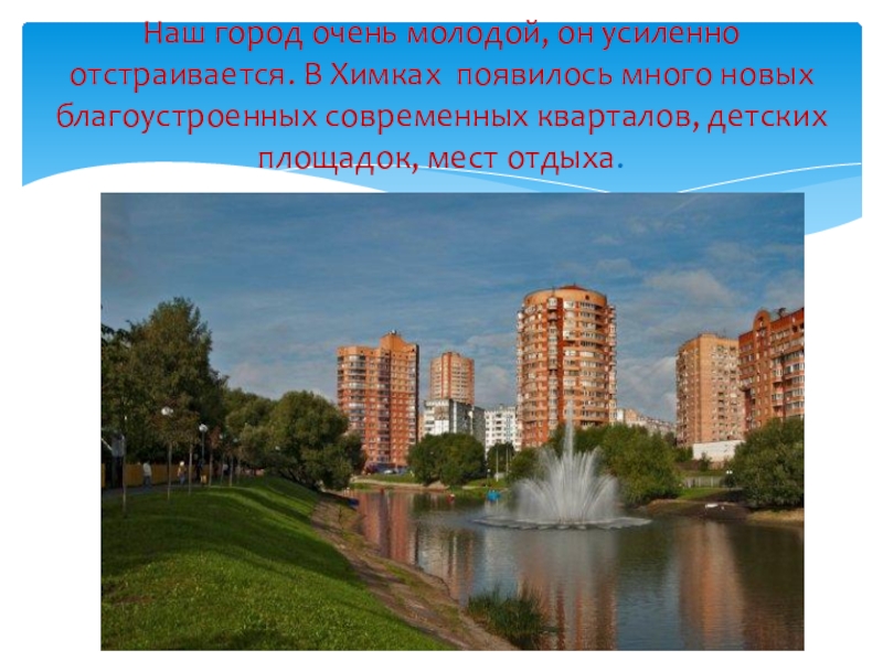 Слайд 5Наш город очень молодой, он усиленно отстраивается. В Химках появилось много