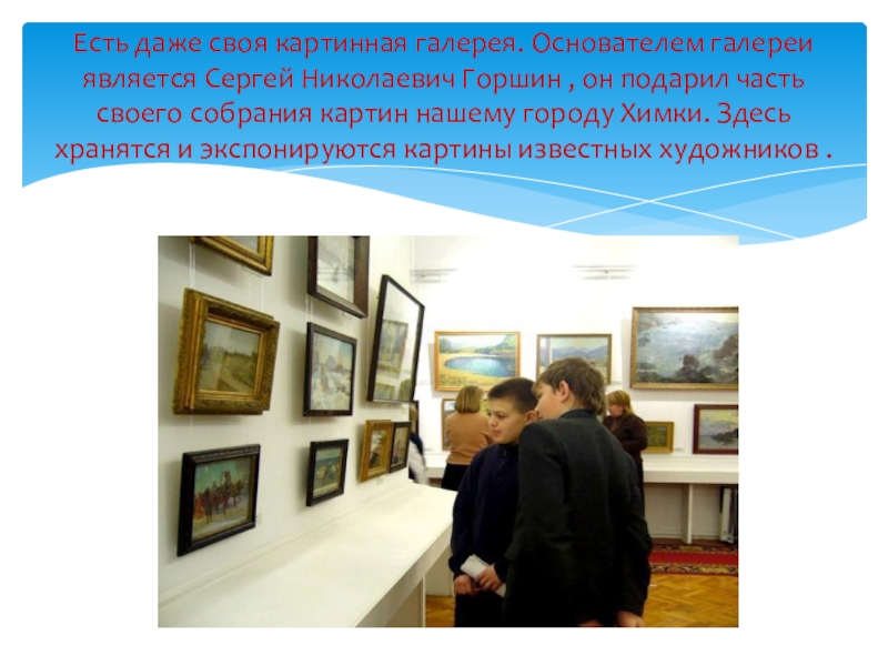 Слайд 16Есть даже своя картинная галерея. Основателем галереи является Сергей Николаевич Горшин