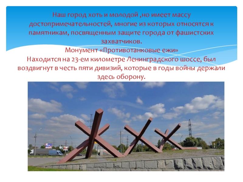 которых относятся к памятникам, посвященным защите города от фашистских захватчиков.