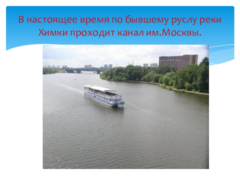 Слайд 3В настоящее время по бывшему руслу реки Химки проходит канал им.Москвы.