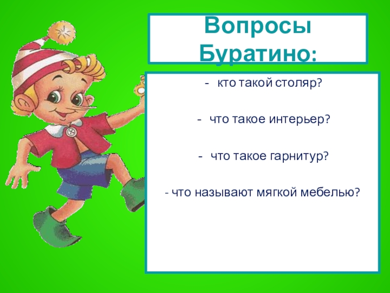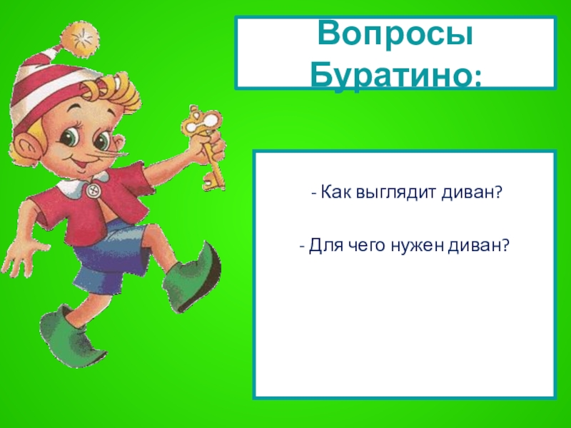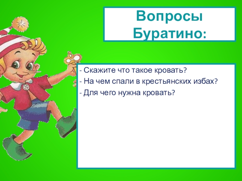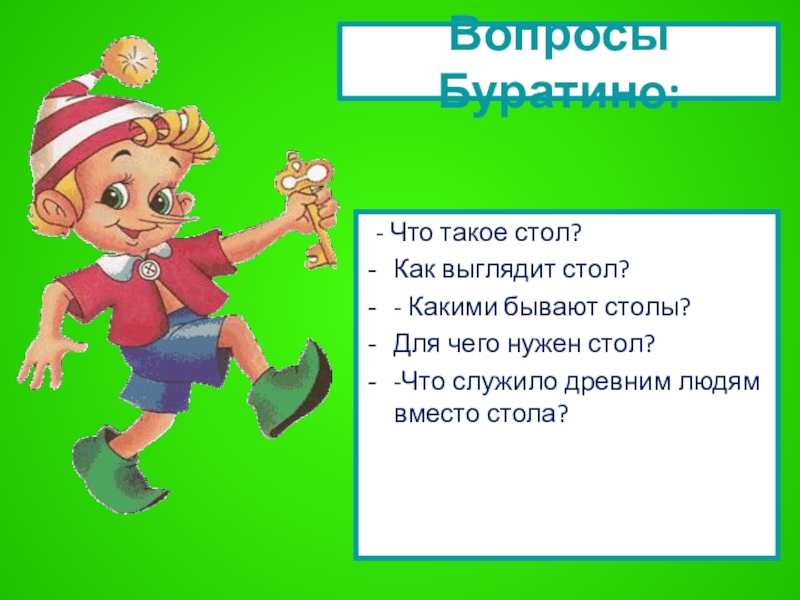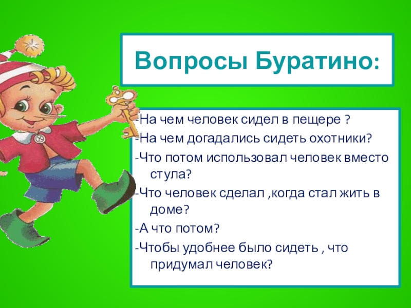 Слайд 15Вопросы Буратино: