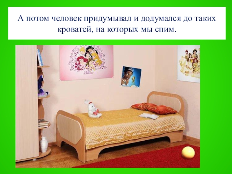 Слайд 24А потом человек придумывал и додумался до таких кроватей, на которых