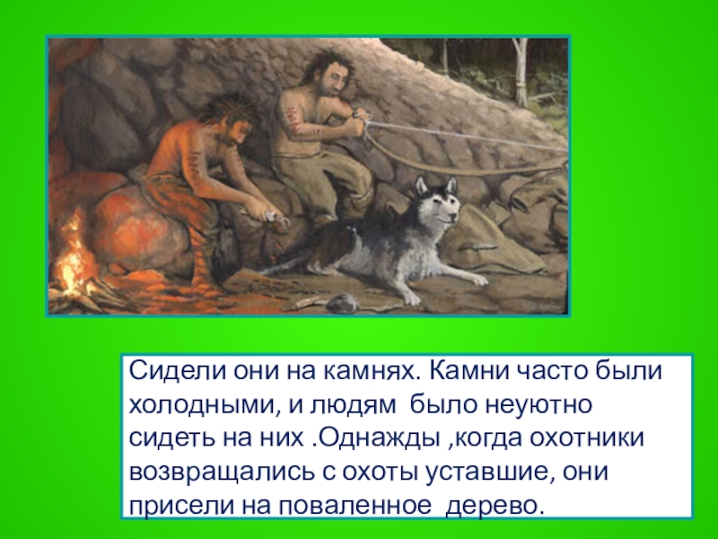 Слайд 9Сидели они на камнях. Камни часто были холодными, и людям было