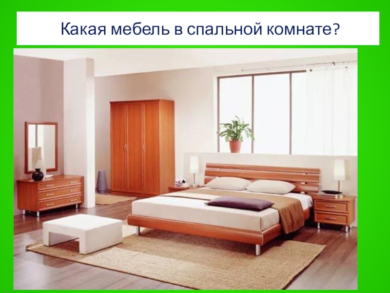 Слайд 47 Какая мебель в спальной комнате?