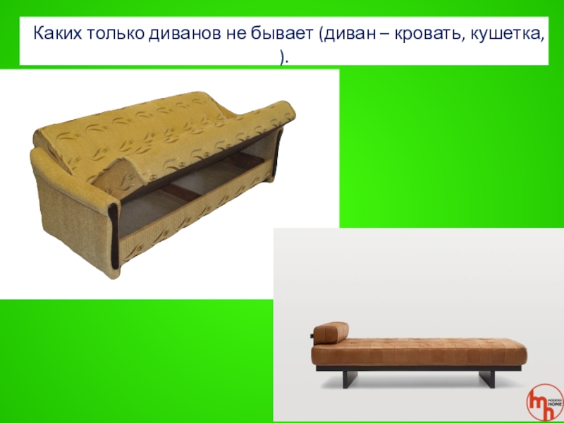 Слайд 41 Каких только диванов не бывает (диван – кровать, кушетка, ).