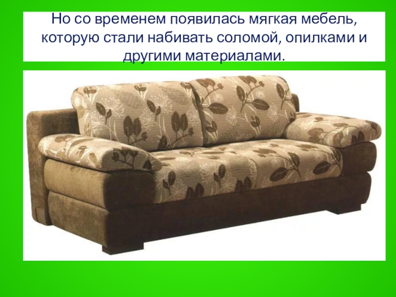 Слайд 40Но со временем появилась мягкая мебель, которую стали набивать соломой, опилками