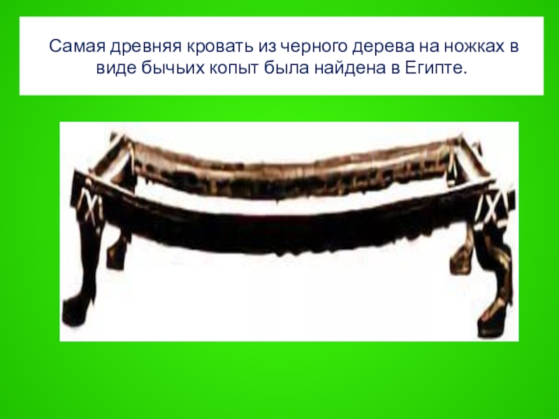 Слайд 20 Самая древняя кровать из черного дерева на ножках в виде