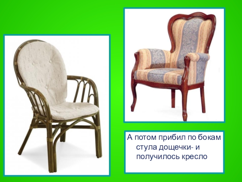 Слайд 14А потом прибил по бокам стула дощечки- и получилось кресло