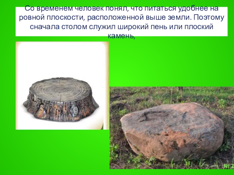 Слайд 29Со временем человек понял, что питаться удобнее на ровной плоскости, расположенной