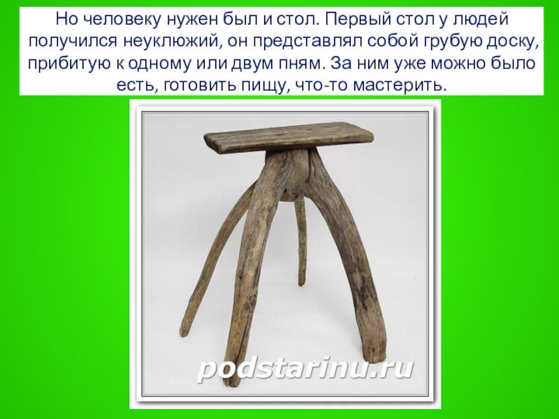 Слайд 27Но человеку нужен был и стол. Первый стол у людей получился