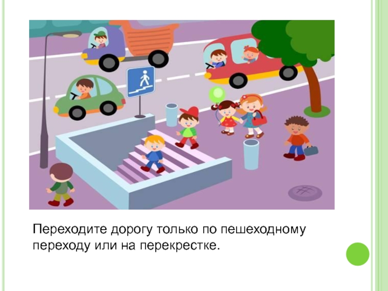 Слайд 7Переходите дорогу только по пешеходному переходу или на перекрестке.