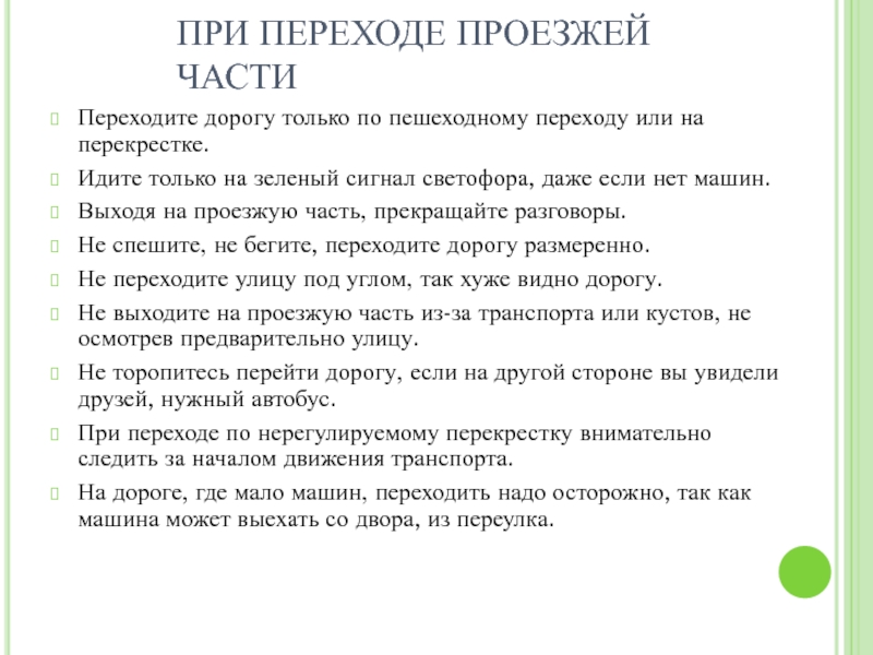 Не выходите на проезжую часть из-за транспорта или кустов, не осмотрев предварительно улицу.
