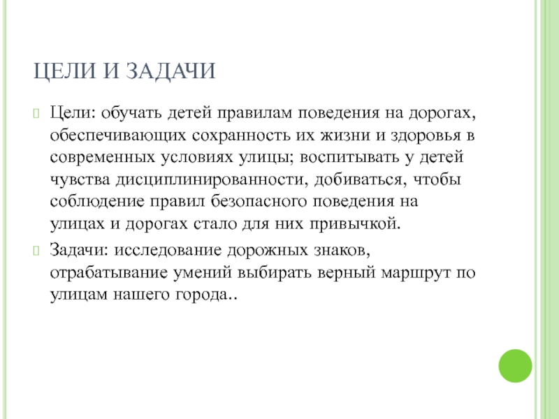 их жизни и здоровья в современных условиях улицы; воспитывать у детей чувства дисциплинированности, добиваться, чтобы соблюдение правил безопасного поведения на улицах и дорогах стало для них привычкой.
