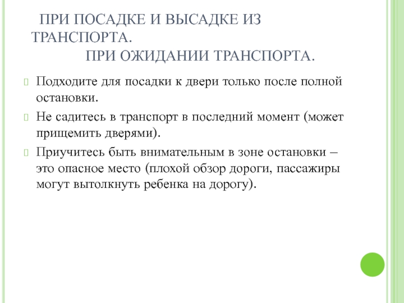 Слайд 12 ПРИ ПОСАДКЕ И ВЫСАДКЕ ИЗ ТРАНСПОРТА.