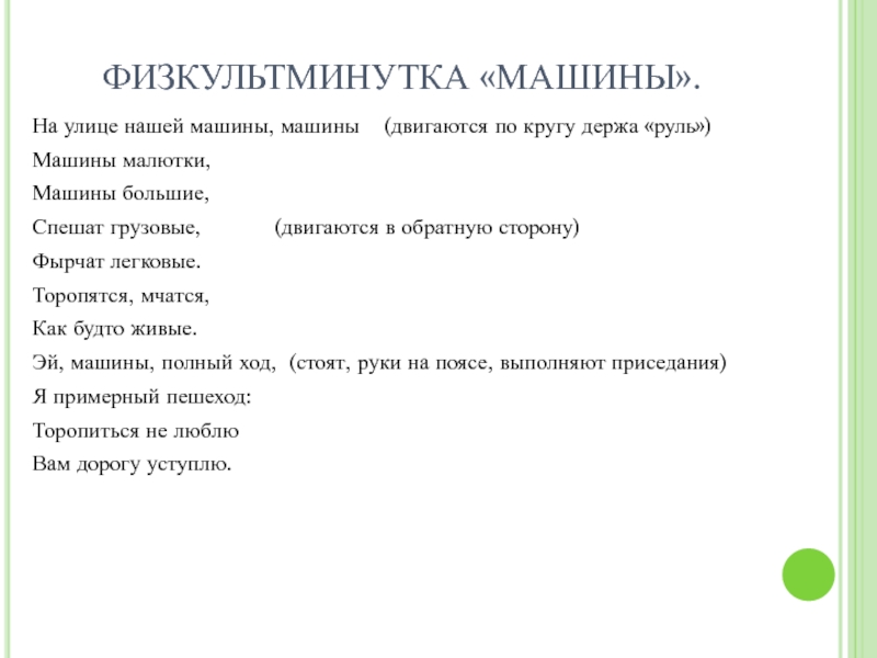 Слайд 15ФИЗКУЛЬТМИНУТКА «МАШИНЫ».