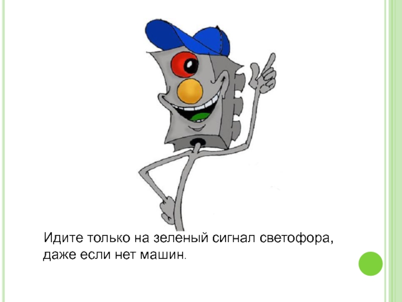 Слайд 8Идите только на зеленый сигнал светофора, даже если нет машин.