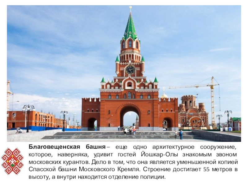 Слайд 4Благовещенская башня – еще одно архитектурное сооружение, которое, наверняка, удивит гостей Йошкар-Олы