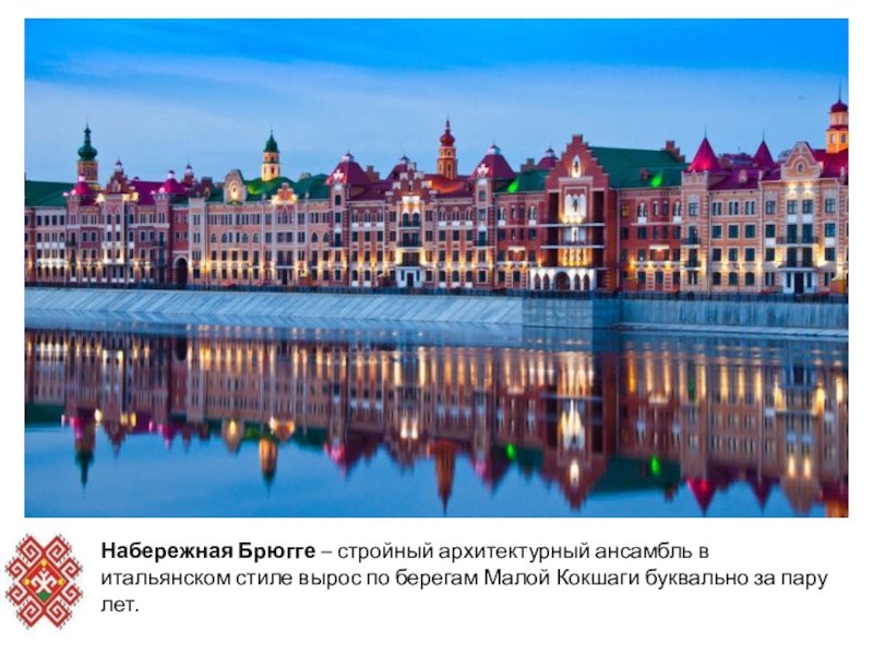 Набережная Брюгге – стройный архитектурный ансамбль в итальянском стиле вырос по берегам Малой Кокшаги буквально за пару лет.