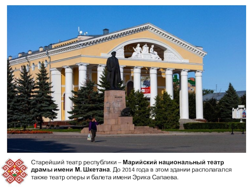 Слайд 9Старейший театр республики – Марийский национальный театр драмы имени М. Шкетана. До