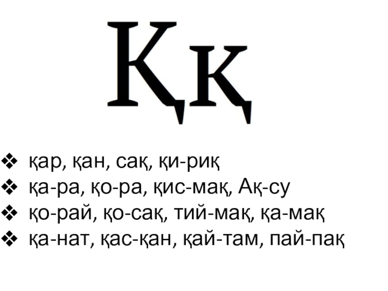 Слайд 5 қар, қан, сақ, қи-риқ