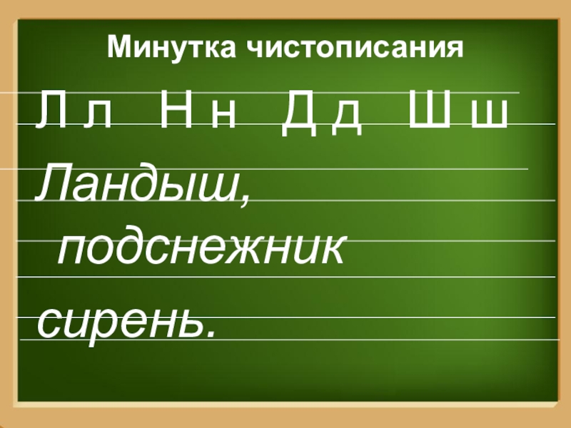 Минутка чистописанияЛ л  Н н  Д д  Ш шЛандыш, подснежниксирень.