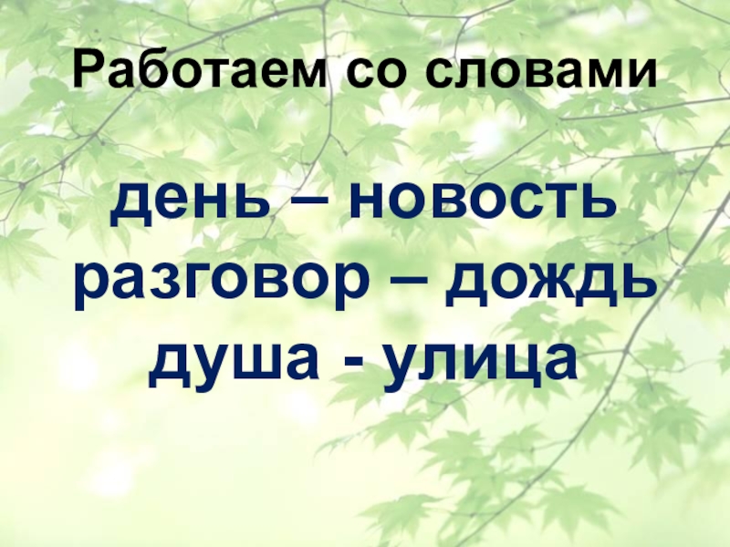 Слайд 14Работаем со словами день – новость разговор – дождь душа - улица