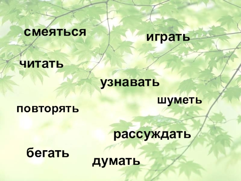 смеятьсяигратьчитатьдуматьузнаватьшуметьповторятьбегатьрассуждать