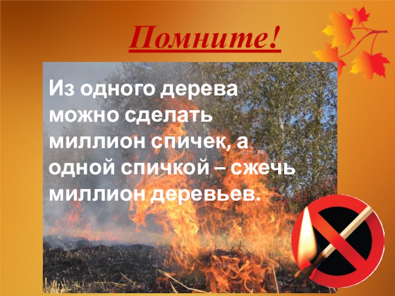 Из одного дерева можно сделать миллион спичек, а одной спичкой – сжечь миллион деревьев.