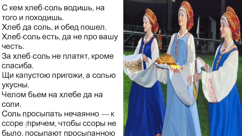 Слайд 4С кем хлеб-соль водишь, на того и походишь.