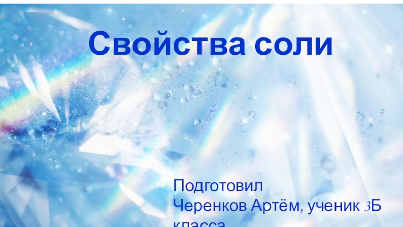 Свойства солиПодготовилЧеренков Артём, ученик 3Б классаМАОУ СОШ № 23