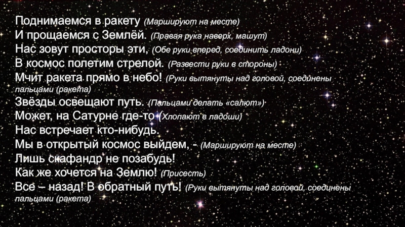 Звёзды освещают путь. (Пальцами делать «салют»)