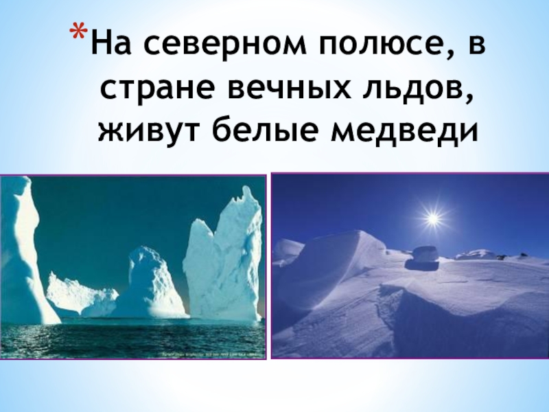 Слайд 2На северном полюсе, в стране вечных льдов, живут белые медведи
