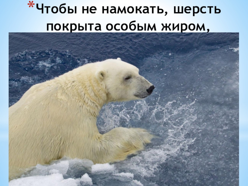 Слайд 8Чтобы не намокать, шерсть покрыта особым жиром,
