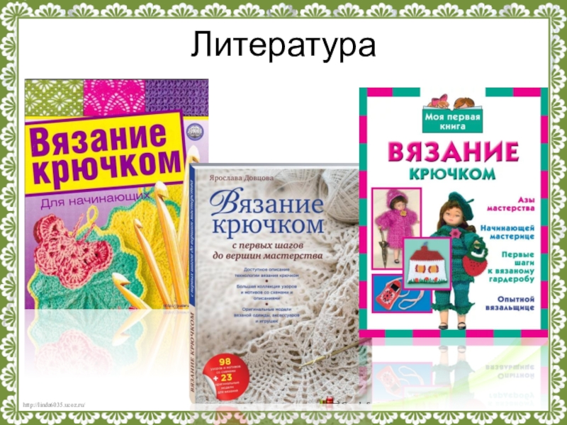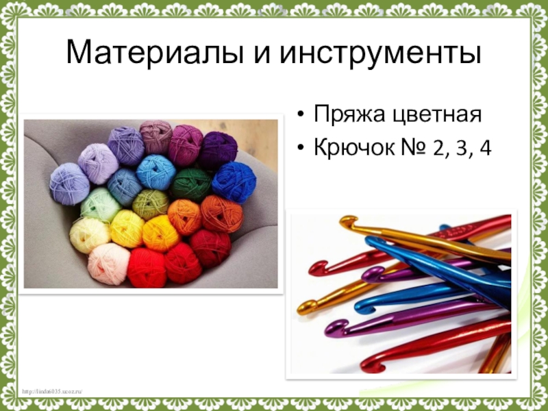 Презентация, доклад по художественной обработке материалов на тему Учимся вязать крючком (3 курс)
