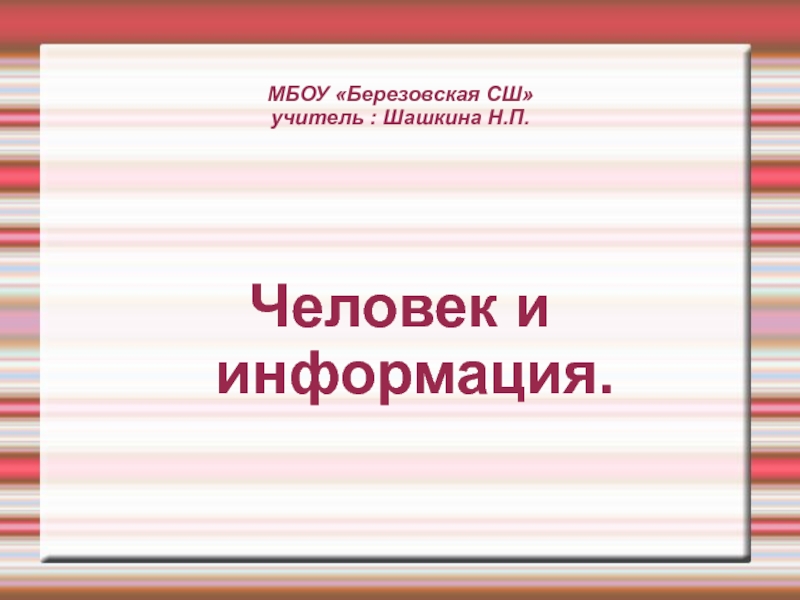 МБОУ «Березовская СШ» учитель : Шашкина Н.П.Человек и информация.