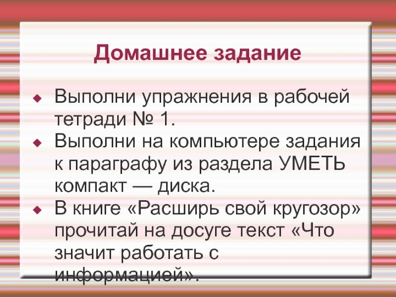 В книге «Расширь свой кругозор» прочитай на досуге текст «Что значит работать с информацией».