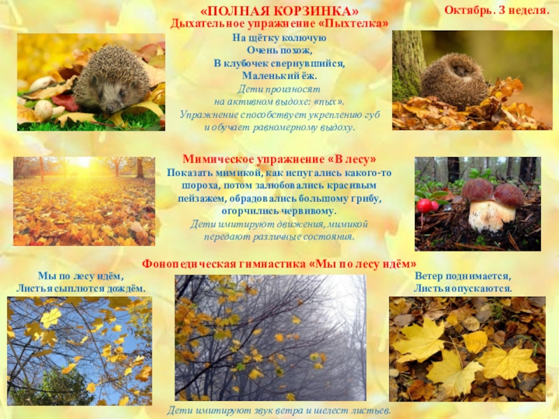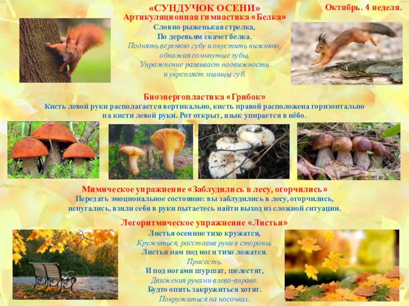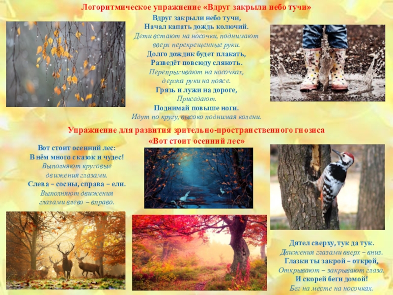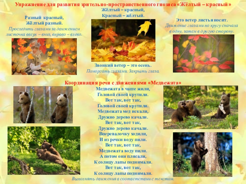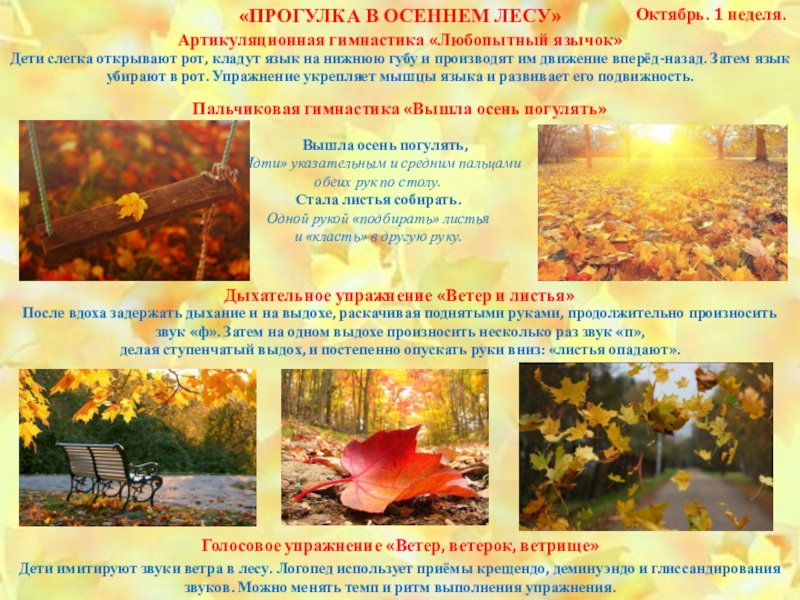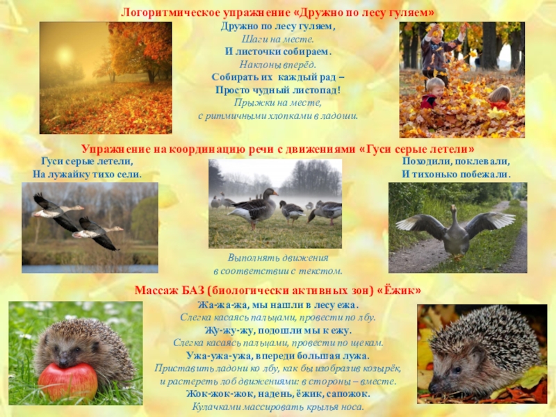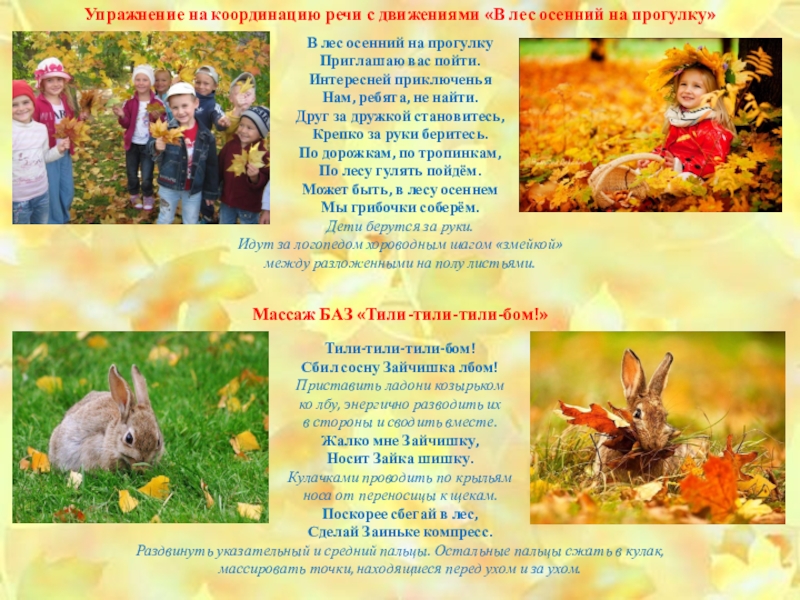 Упражнение на координацию речи с движениями «В лес осенний на прогулку»