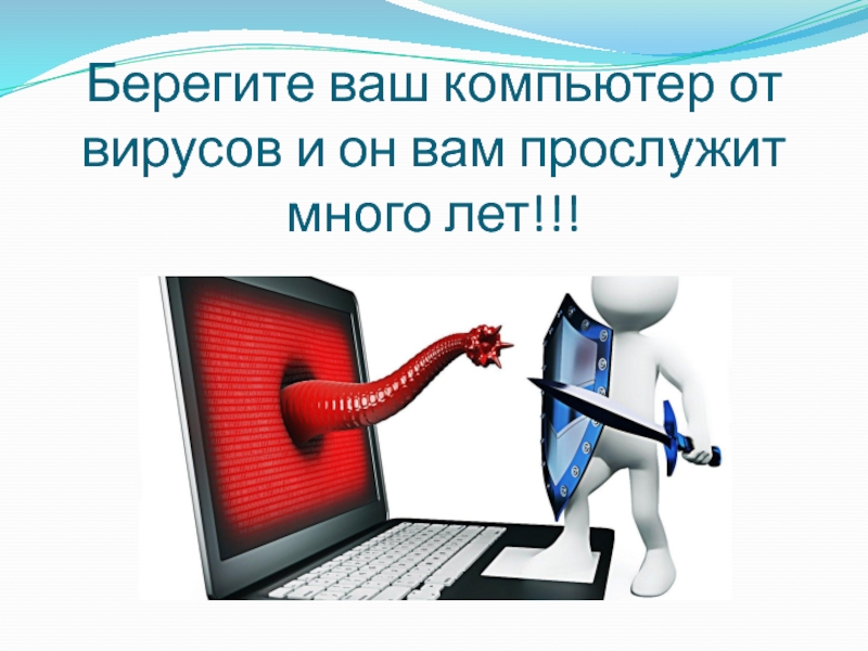 Слайд 11Берегите ваш компьютер от вирусов и он вам прослужит много лет!!!
