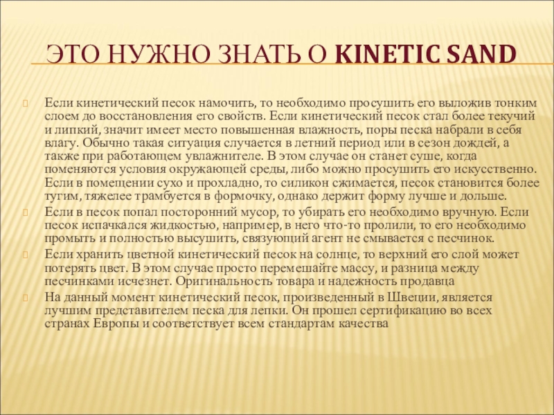 Слайд 13ЭТО НУЖНО ЗНАТЬ О KINETIC SAND