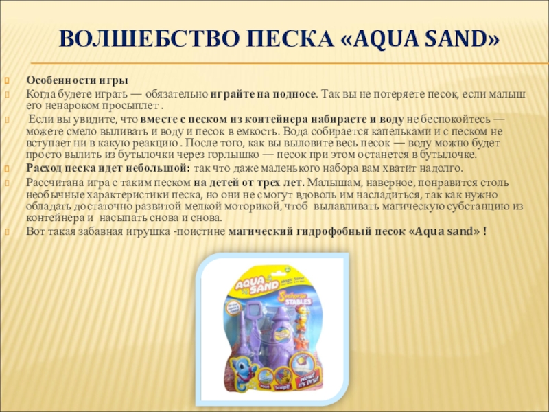 Слайд 16ВОЛШЕБСТВО ПЕСКА «AQUA SAND»