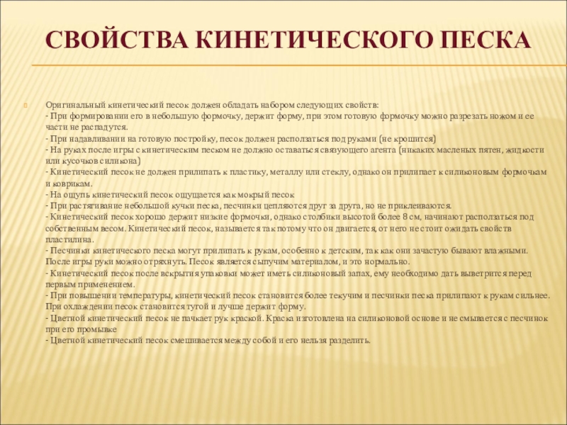 Слайд 11СВОЙСТВА КИНЕТИЧЕСКОГО ПЕСКА