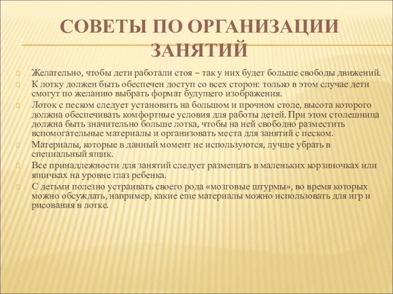 Слайд 4СОВЕТЫ ПО ОРГАНИЗАЦИИ ЗАНЯТИЙ