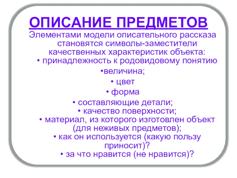 Слайд 25ОПИСАНИЕ ПРЕДМЕТОВ