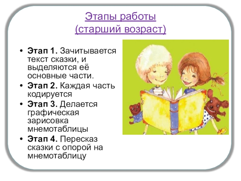 Слайд 16Этап 4. Пересказ сказки с опорой на мнемотаблицу