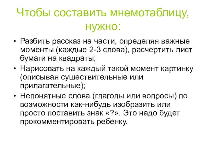 Слайд 15Чтобы составить мнемотаблицу, нужно: