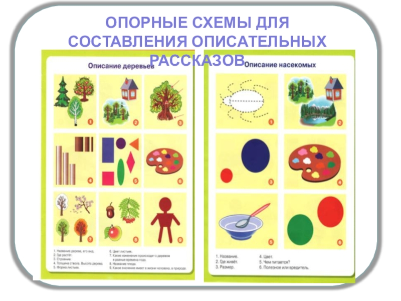 Слайд 26ОПОРНЫЕ СХЕМЫ ДЛЯ СОСТАВЛЕНИЯ ОПИСАТЕЛЬНЫХ РАССКАЗОВ