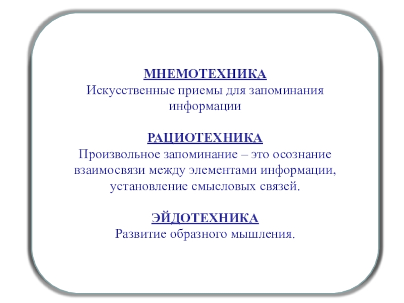 это система методов и приёмов, обеспечивающих эффективное запоминание, сохранение и воспроизведение информации