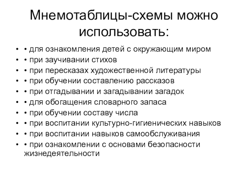 Слайд 9Мнемотаблицы-схемы можно использовать: