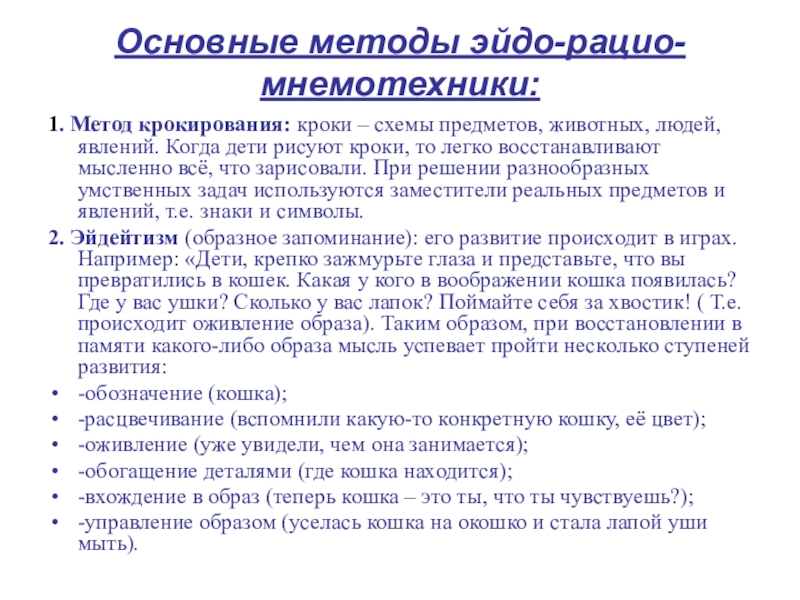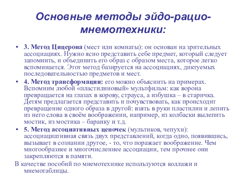 Слайд 5Основные методы эйдо-рацио-мнемотехники: