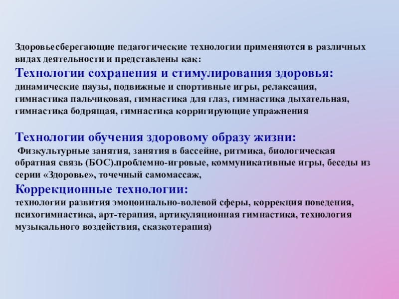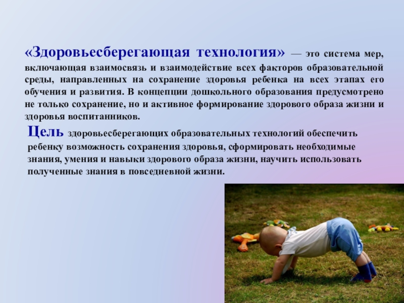 Цель здоровьесберегающих образовательных технологий обеспечить ребенку возможность сохранения здоровья, сформировать необходимые знания, умения и навыки здорового образа жизни, научить использовать полученные знания в повседневной жизни.